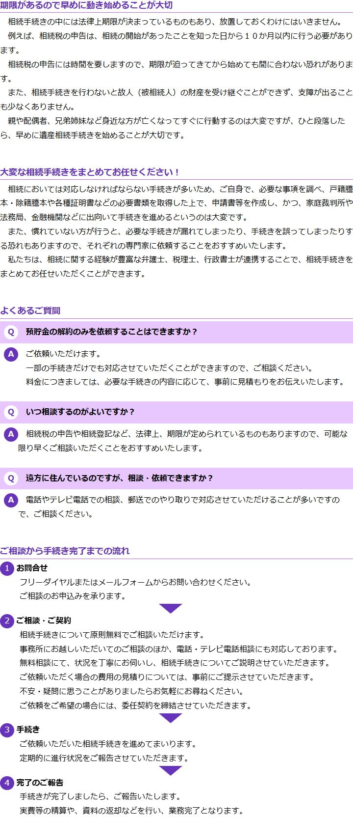その点、専門家は当然手続きに精通していますし、財産調査のノウハウも持ち合わせていますので、相続手続きを正確・確実に行うことができます。